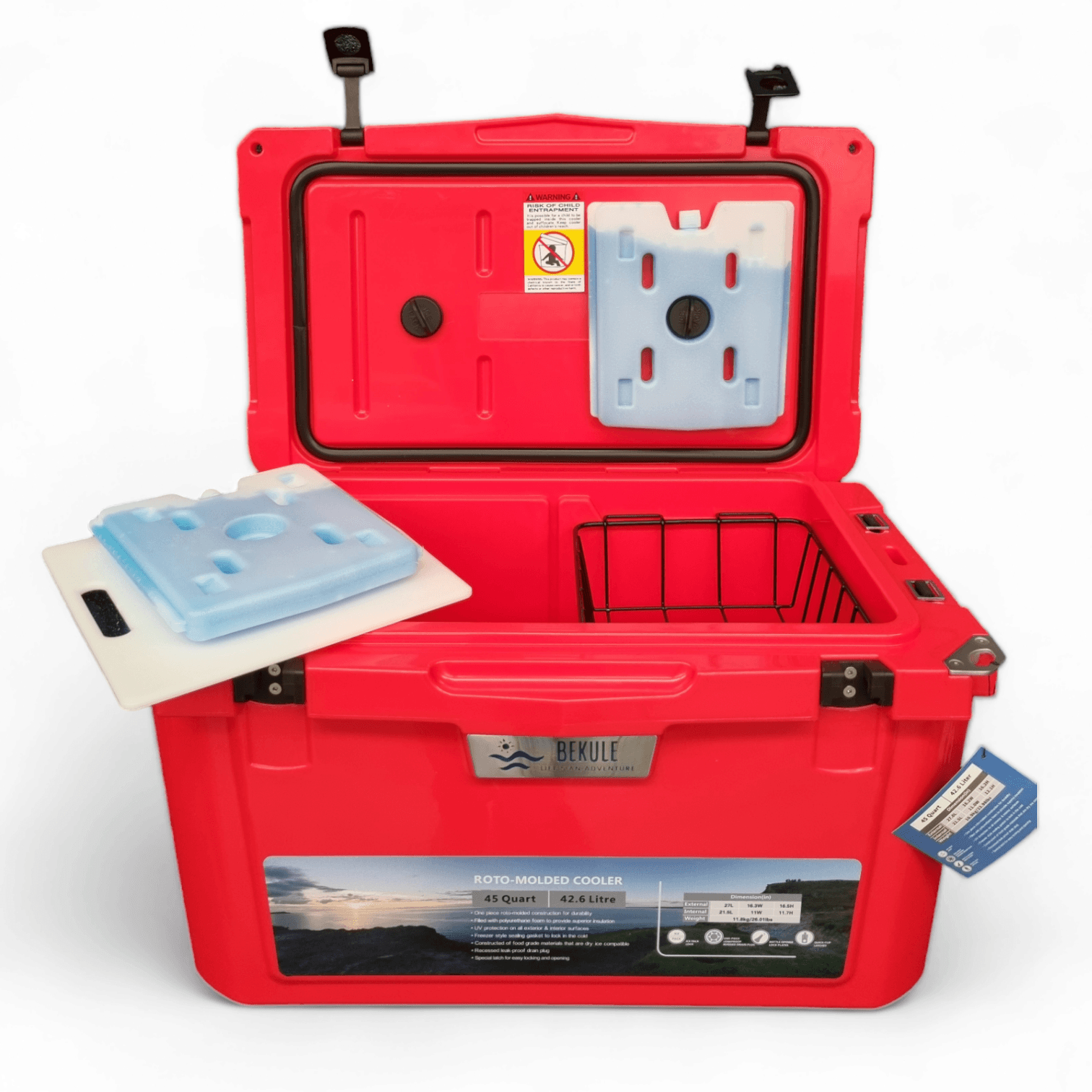 - Includes cup 1x can/bottle holder, 1x chopping board / divider and 1x dry goods basket, 2x ice packs