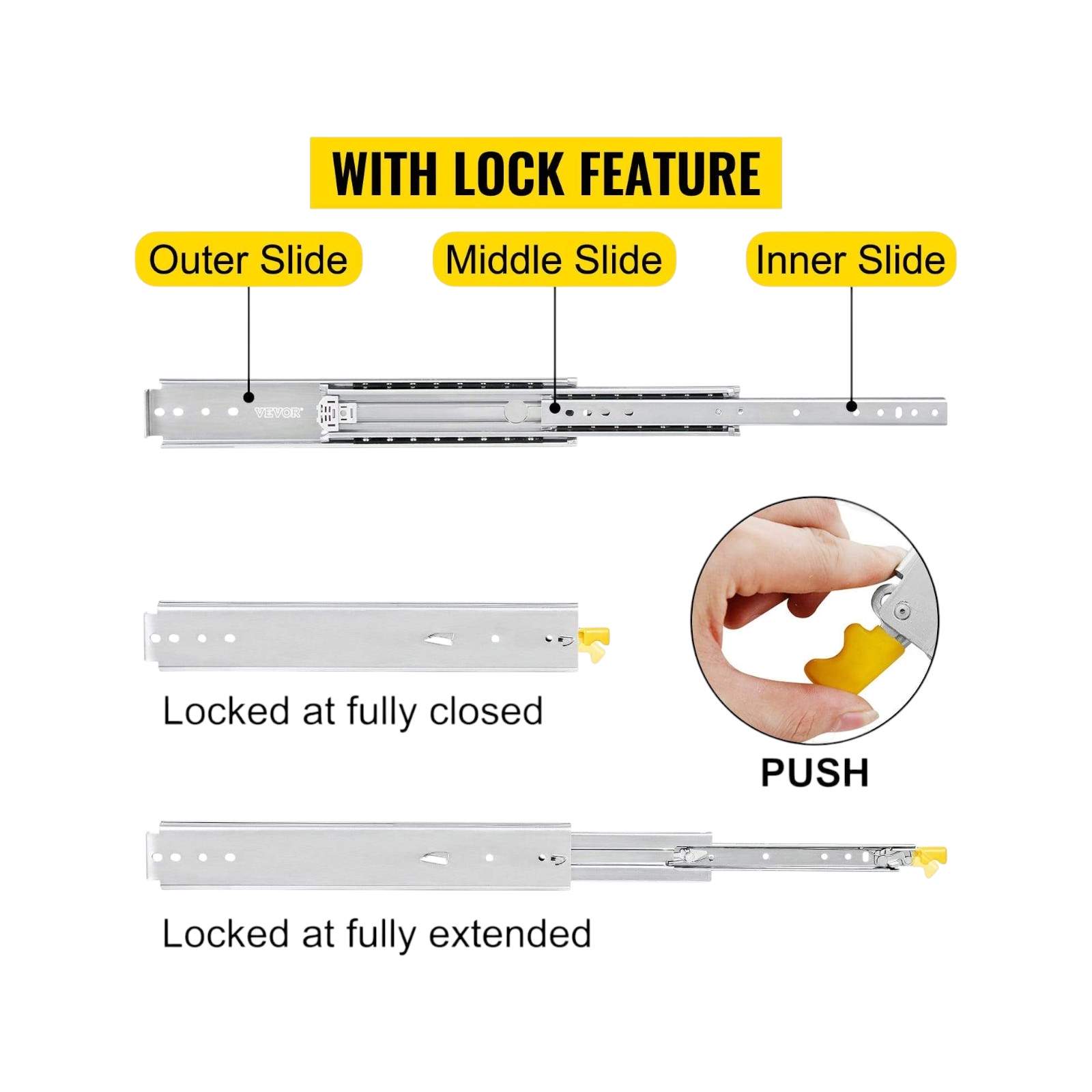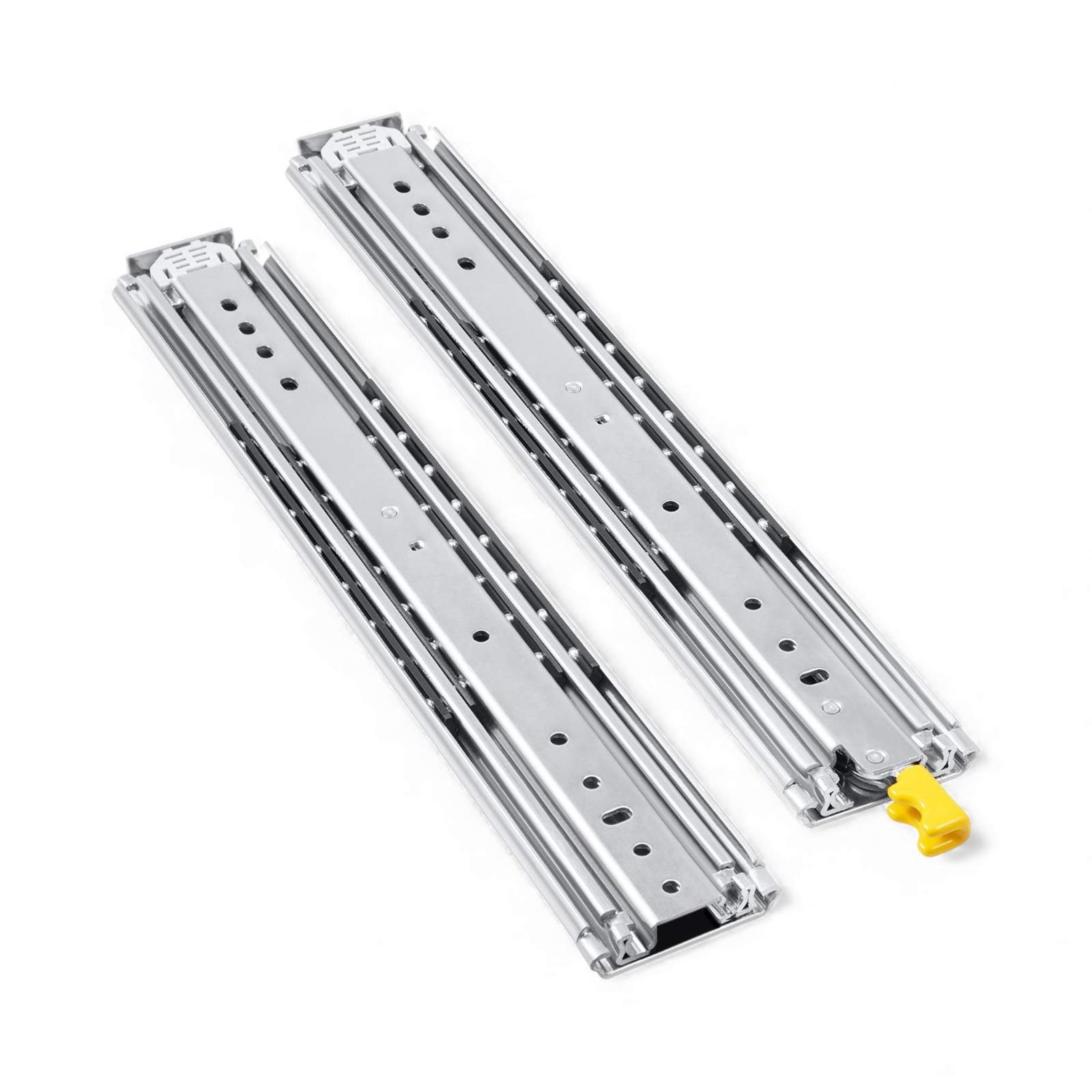 - Secure and rugged enough to support heavy storage without deformation over time. The zinc-plated surface stays the extension drawer slide be rust-proof and abrasion-proof, enduring lifetime use. The slides can be applied to goods shelves, cabinets, the industrial drawers, RVs, trucks, vending machines, etc.
